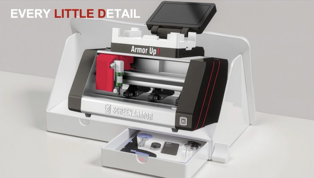 Only with a strong enough machine and a hard enough blade can you cut screen protection on demand that is as hard as glass!